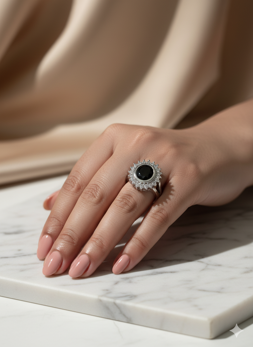 "Silver elegance—a circle of beauty that reflects love, light, and forever."